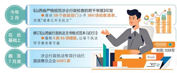 建立執(zhí)法清單,規(guī)范執(zhí)法行為。今年3月,省政府辦公廳印發(fā)《山西省嚴(yán)格規(guī)范涉企行政檢查的若干舉措》,推動(dòng)38個(gè)省級部門公開380項(xiàng)檢查清單,實(shí)現(xiàn)“清單之外無權(quán)力”。同時(shí),省司法廳推動(dòng)各級行政執(zhí)法部門制定并公布年度行政檢查工作計(jì)劃,合理確定本單位對同一企業(yè)實(shí)施行政檢查的年度頻次上限,以及行政執(zhí)法部門的職責(zé)邊界。目前,已有21個(gè)省級行政檢查主體公布了行政檢查年度頻次上限,全省上半年涉企檢查總量同比下降36%。在此基礎(chǔ)上,修訂《山西省行政執(zhí)法文書格式范本(試行)》,編制4類46項(xiàng)模板,讓每個(gè)執(zhí)法環(huán)節(jié)都有章可循,進(jìn)一步規(guī)范執(zhí)法行為。