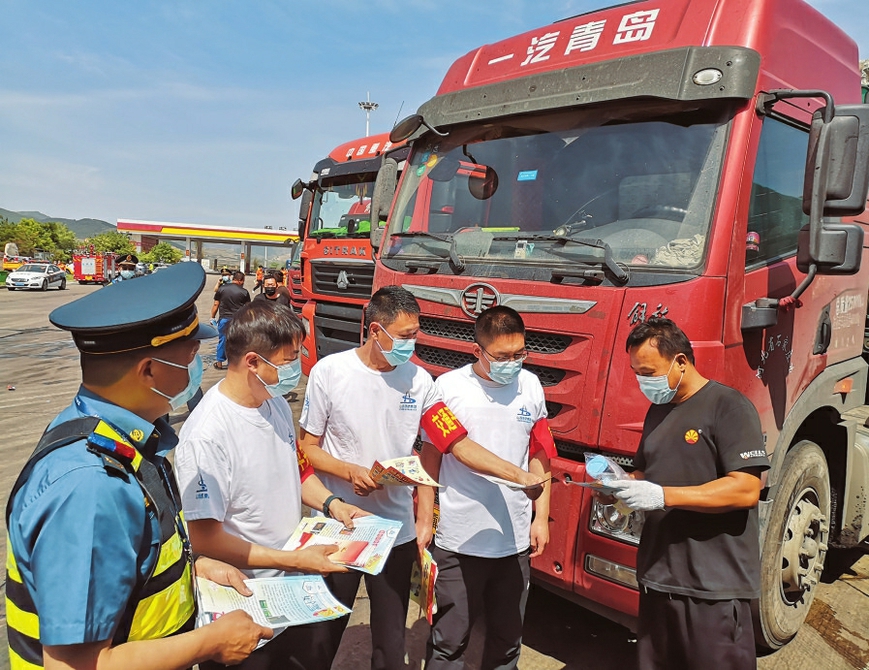 6月16日上午,山西省高速公路綜合行政執(zhí)法總隊太原支隊六大隊在靜樂服務(wù)區(qū)開展“安全生產(chǎn)宣傳咨詢?nèi)铡被顒?,引?dǎo)群眾提升安全意識,關(guān)注安全、關(guān)愛生命。杜文軍攝