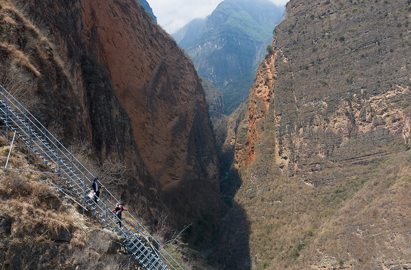 2020年5月13日,四川省涼山彝族自治州昭覺縣支爾莫鄉(xiāng)“懸崖村”——阿土列爾村高山區(qū)的貧困戶沿著鋼梯下山,準備搬進昭覺縣城易地扶貧搬遷安置點的新家(無人機照片)。新華社記者 江宏景 攝