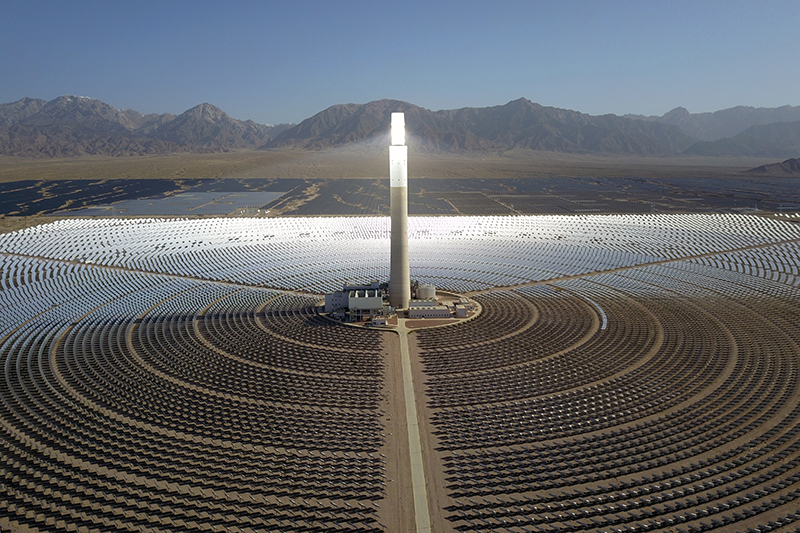 這是2022年6月8日在海西蒙古族藏族自治州德令哈市光伏(光熱)產(chǎn)業(yè)園拍攝的青海中控德令哈50兆瓦光熱電站(無人機照片)。新華社記者 范培珅 攝