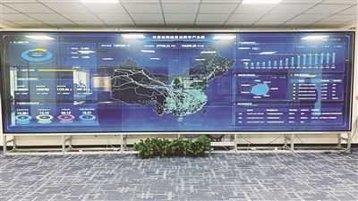 作為一種新的經(jīng)濟(jì)形態(tài),數(shù)字經(jīng)濟(jì)已經(jīng)滲透到傳統(tǒng)貨運(yùn)行業(yè)。在山西網(wǎng)絡(luò)貨運(yùn)數(shù)字產(chǎn)業(yè)園的巨幅大屏上,不斷閃動的數(shù)據(jù)實時顯示著貨物熱度分布圖、車輛熱度分布圖等,讓人對園區(qū)運(yùn)營情況一目了然。本報記者 王蕾 攝
